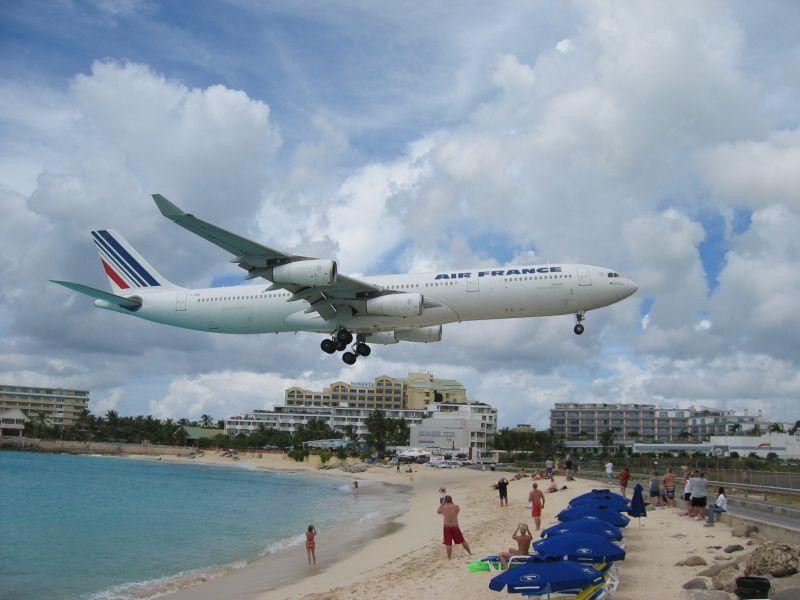 A340 over Maho Beach