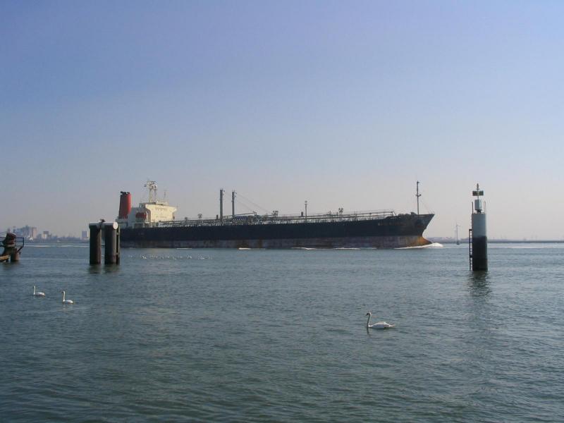 Ship leaving the Rotterdam harbour.