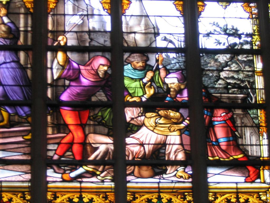 Stained glass inside the Sint Michiels and Goedele Cathedral in Brussels, Belgium. Does anyone know what scene is portrayed?